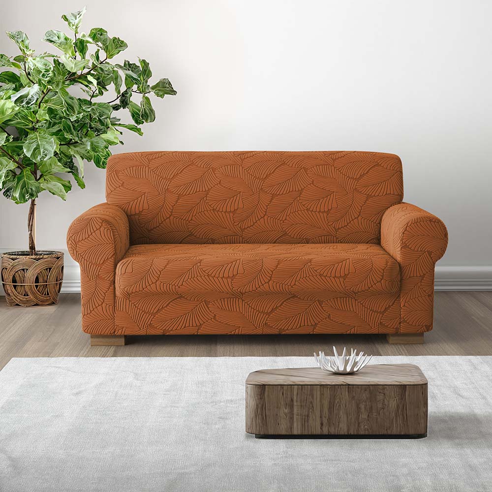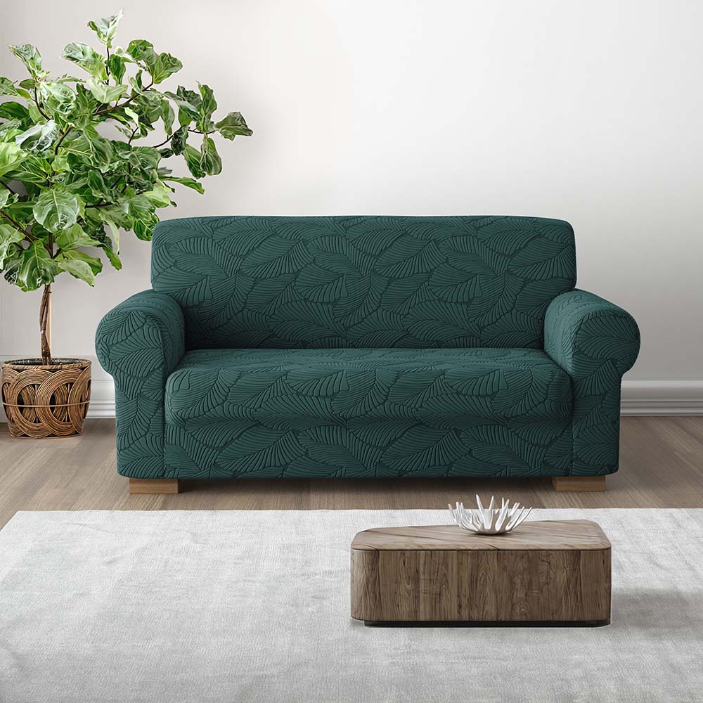 Il copridivano IRGE Miù è realizzato in tessuto elasticizzato in un fantastico decoro con foglie eleganti e stilizzate